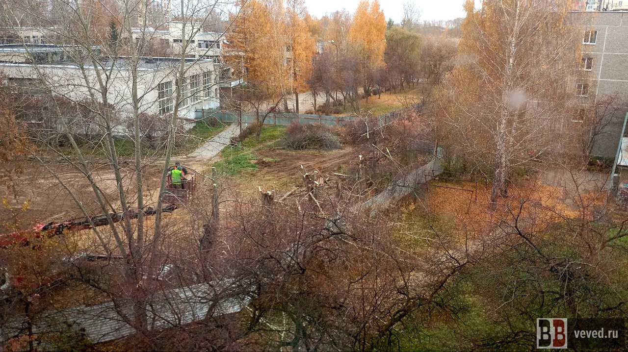 Воскресенье, 12 октября, 15.24 Массовую вырубку деревьев производят вокруг школы №92 в екатеринбургском микрорайоне Кольцово