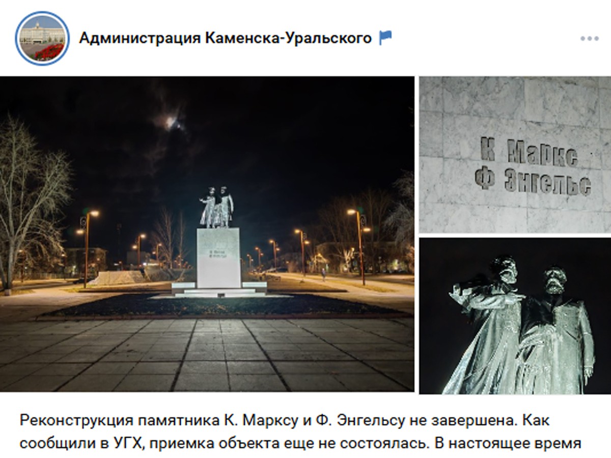 Понедельник, 3 ноября, 15.39 В Каменске-Уральском не приняли реконструкцию памятника Марксу и Энгельсу после критики горожан