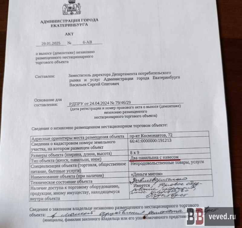 В 2025 году, как и у большинства екатеринбургских владельцев НТО, договор с мэрией на размещение этих торговых точек закончился, после чего администрация не стала его продлевать и выставила требование о демонтаже. Один из двух киосков предпринимательница успела демонтировать сама, а второй был демонтирован подрядчиком мэрии.