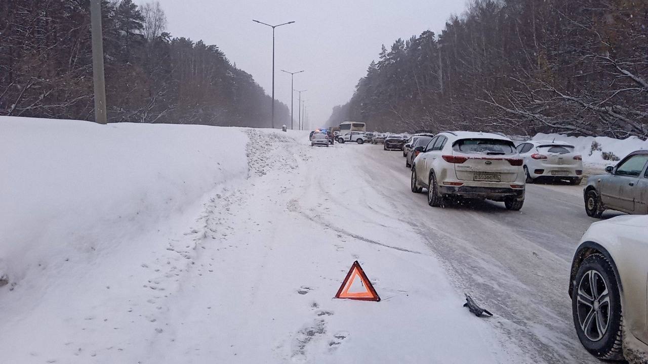 На дублере Сибирского тракта при въезде в Екатеринбург столкнулись около 11 автомобилей