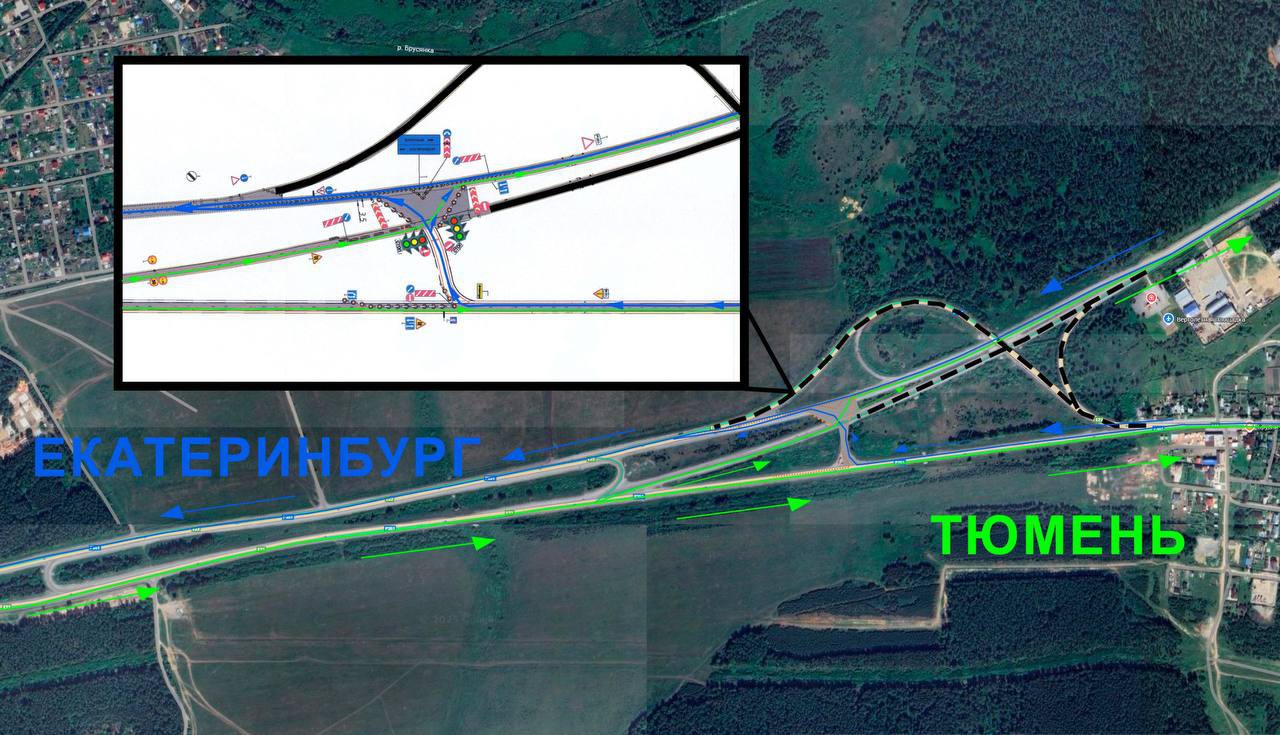 «Уралуправтодор» предупреждает водителей о работах по строительству и реконструкции обхода Белоярского, участка трассы «Екатеринбург – Тюмень», в районе села Малобрусянское, из-за которого изменится схема движения.