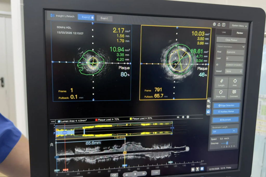 Кардиологи быстро диагностировали обширный инфаркт и сразу передали мужчину рентгенэндоваскулярным хирургам. Во время операции пациенту установили два стента и восстановили кровоток в сердце.