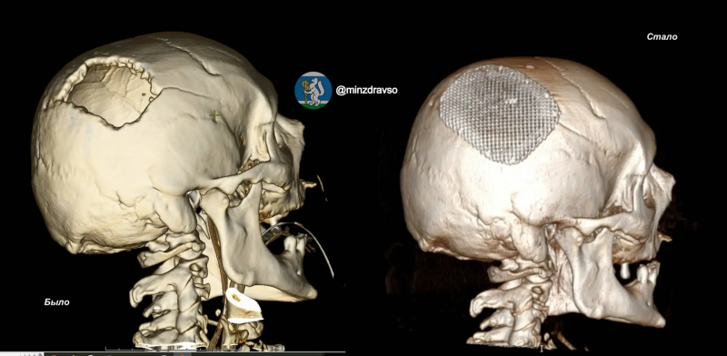 «В ходе недавней операции нейрохирурги восстановили анатомическую форму черепа, полностью воссоздав естественный защитный барьер из титана для головного мозга»,