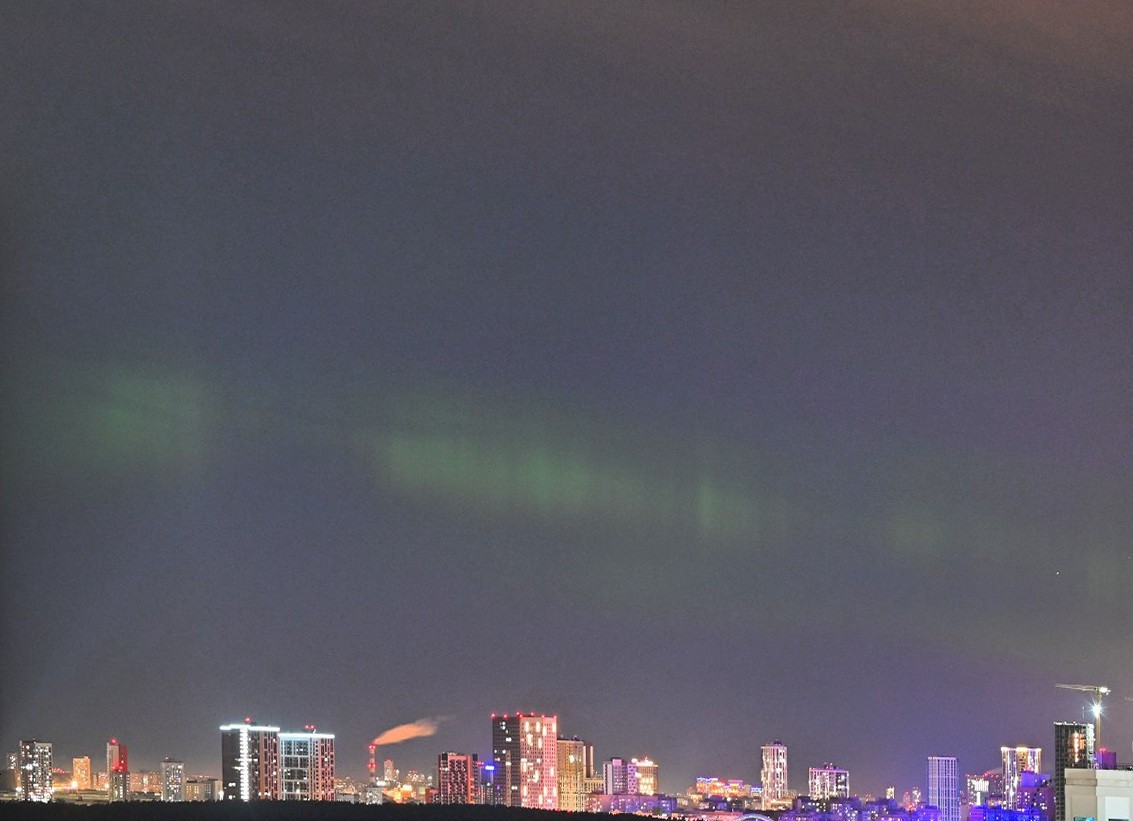 Сияние настолько яркое, что его можно видеть даже из Екатеринбурга, при всём свете городского освещения.