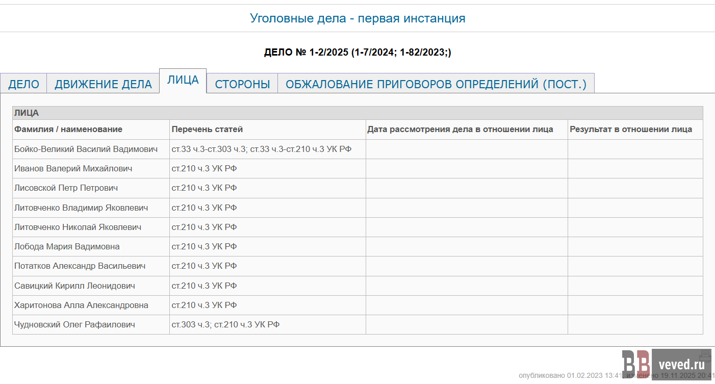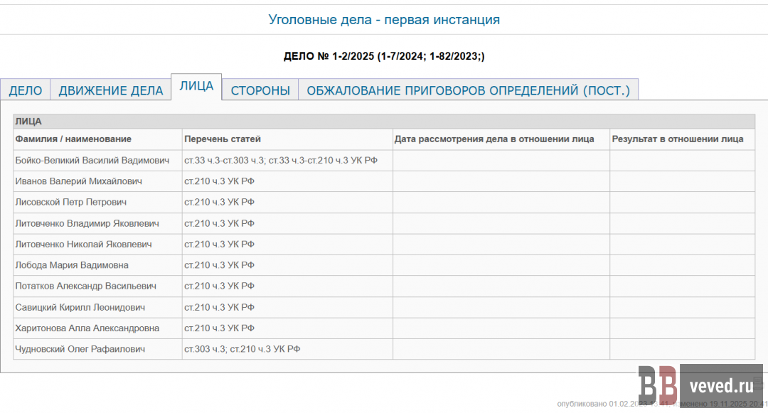Обвиняемые по делу ОПС Бойко-Великого. Скриншот с сайта Можайского городского суда